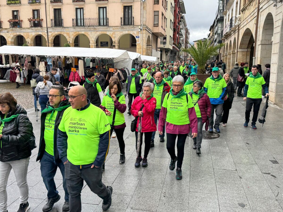 Zumarragan eta Urretxun barrena, 3 kilometroko kale ibilaldia egin dute. Zelai Ariztitik Euskadi enparantzara jaitsi, eta Soraluze kaletik Areizaga-Kalebarren plazaraino; handik, Urretxuko aldapan gora, Abenida eta Iparragirre kaleetan jira egin, Labeaga osoa ibili, eta Mugitegiko errotondan atzera Zumarragara itzuli dira, Zelai Ariztiko karpan bukatzeko. Elkartearen elastiko berde argi-bizia eta lepoko zapia jantzita parte hartu dute askok.