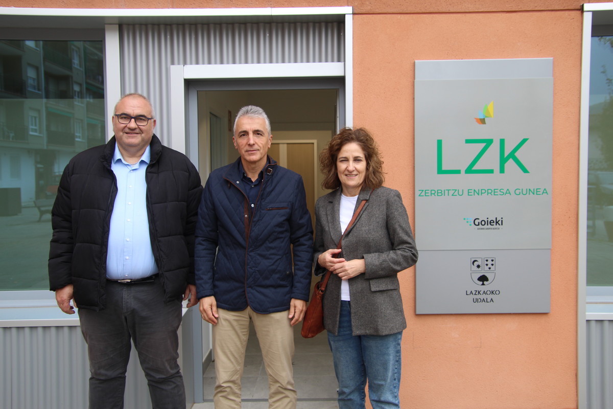 Josetxo Sare, Kepa Zubiarrain eta Izaro Gurrutxaga, bisitaldian. Lazkaoko Udala Amaitu dira orain lau hilabete udalak abiarazi zituen Lazkaoko Hirigoien kaleko 56 eta 58 zenbakietan dauden bi lokalak birgaitzeko lanak. Goieki Garapen Agentziarekin elkarlanean, ekintzaileentzako udal bulego berriak egokitu dituzte, ingurune egokiagoa zein irisgarriagoa bermatzea helburu hartuta.