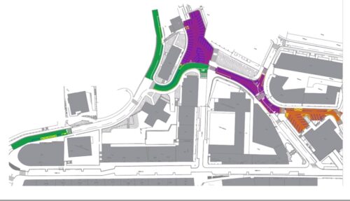 Bihar, asteartea, Martina Maiz kalea hartuko dute lanek (beheko mapan eremu morea), eta mugikortasunean eragina izango du, Bista Alai bidean 82-7 zenbakiak) eta Erauskin kalerako jaitsieran.