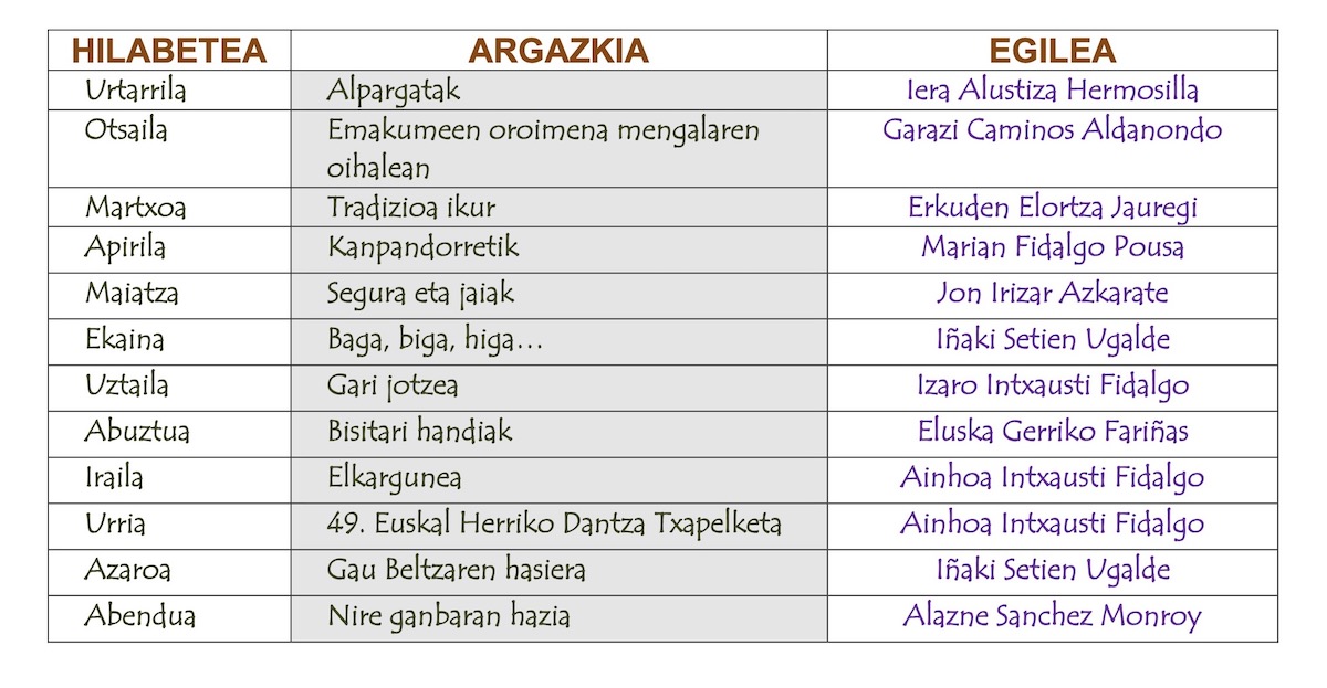 Guztira 21 parte hartzaile eta 53 argazki aurkeztu dira lehiaketara, baina lau epaileek aukeratutako 12 argazkik osatuko dute 2026ko egutegia. Ondorengoak dira aukeratuak:
