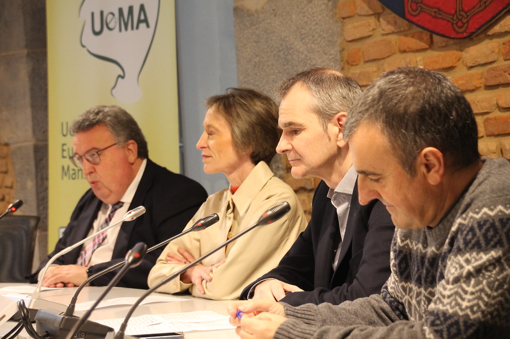 Udalerri euskaldunetako bulegoetan euskara lehenesteko konpromisoa berretsi dute UEMArekin hiru finantza erakundek