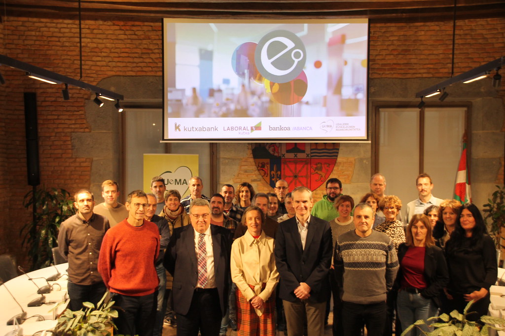 Finantza alorrean euskararen erabilera areagotzeko hitzarmena sinatu eta aurkeztu dute gaur UEMAk, Kutxabankek, Laboral Kutxak eta Bankoa ABANCAk, 59 udalerri euskaldunetako alkateekin eta ordezkariekin batera.