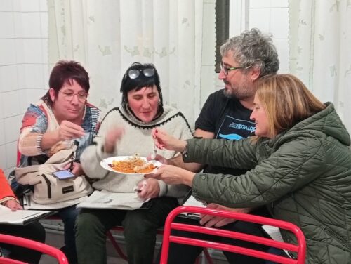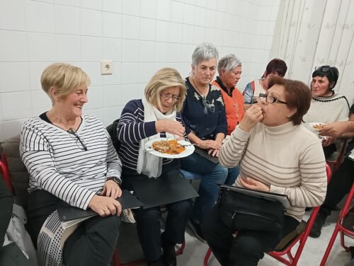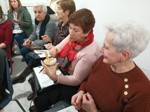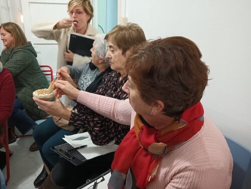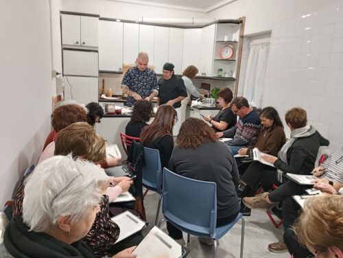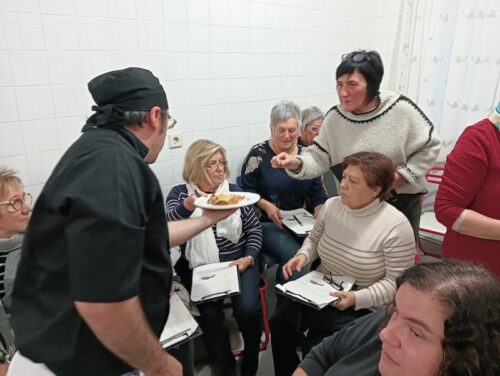 Atzo egin zuten lehen saioa, gaur izango da bigarrena, eta falta direnak, bihar eta etzi izango dira. Iratzarriren egoitzako sukaldean ari dira egiten ikastaroak.