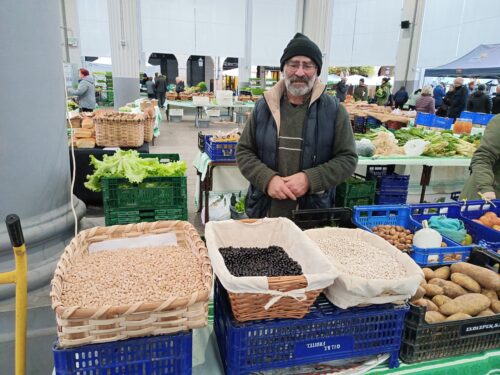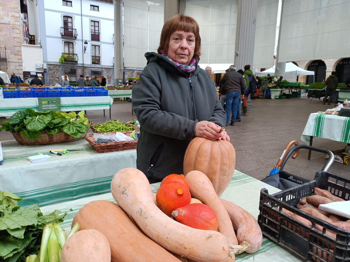 Negurako oraindik aste batzuk falta dira, baina ia udazkenik izan ez den urte honetan bat batean sartu da urtaro horretako giroa. Gaur goizean hotz eta euria egiteaz gain, aurreko ostiraleko elur kontuak izan dira hizpide azokan, baina horrelako egunetarako jaki aproposak badituela salgai erakutsi die erosleei.