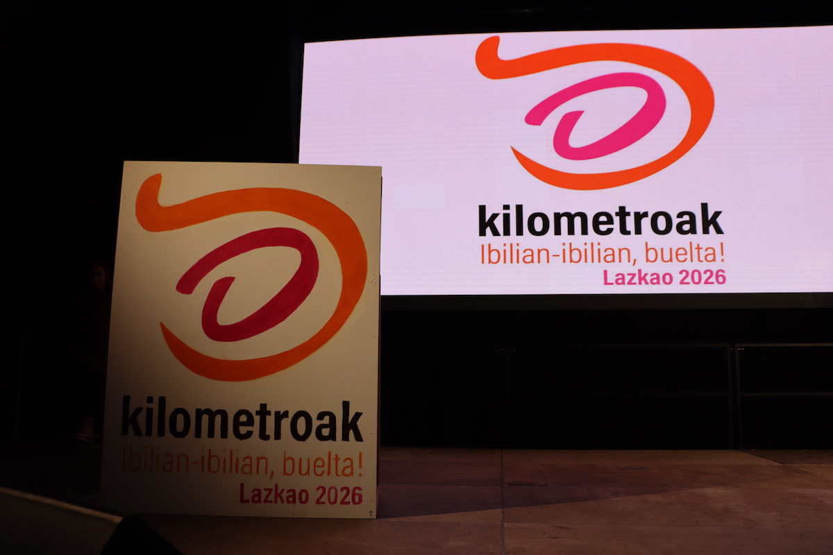 2026ko Kilometroak jaiaren lema eta logoa, aurkezpenean.Iñaki Gurrutxaga
