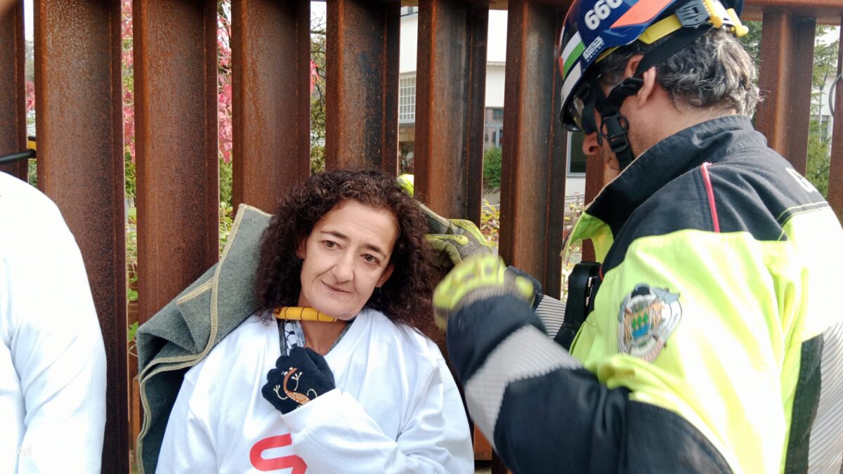 Ekintzaileek kateatuta jarraitzen zuten eguerdian. Ertzainburuak esan die, protesta amaitzea erabakitzen dutenean, Poliziak suhiltzaileei deituko diela kateatutakoak askatzeko.