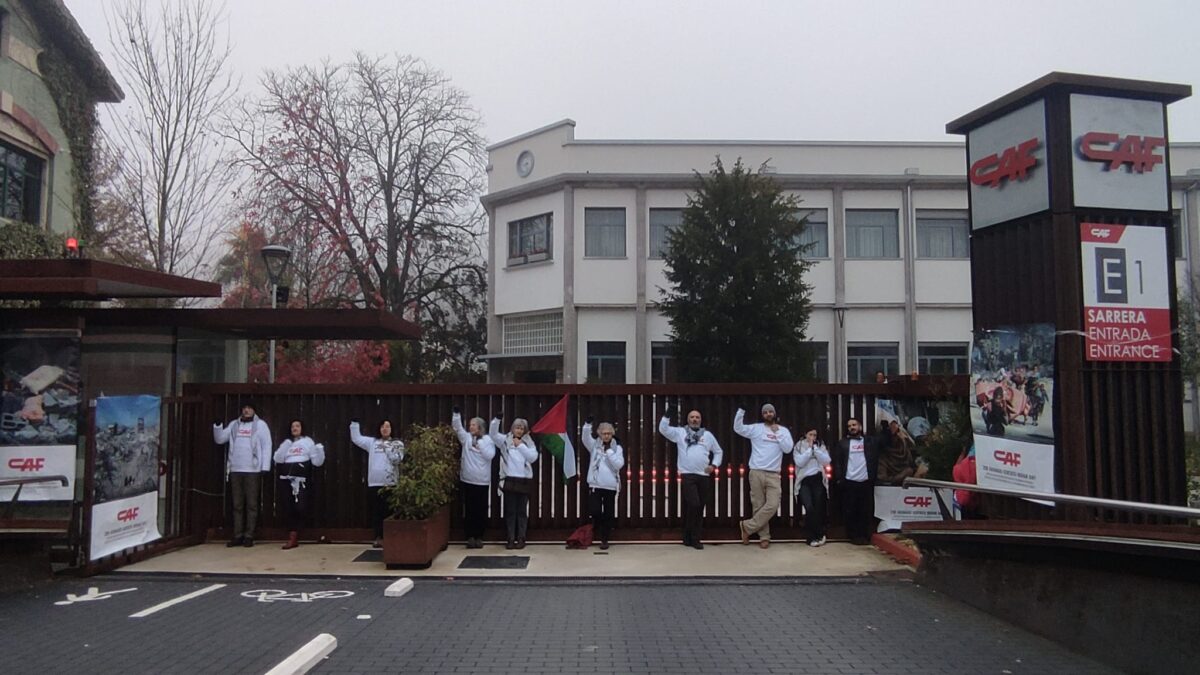 Gazarako Mugimendu Globala taldeko kideak dira, eta CAFi exijitzen diote "Israelekin eta okupazioaren konplize diren enpresekin" dituen kontratu guztiak eteteko.
