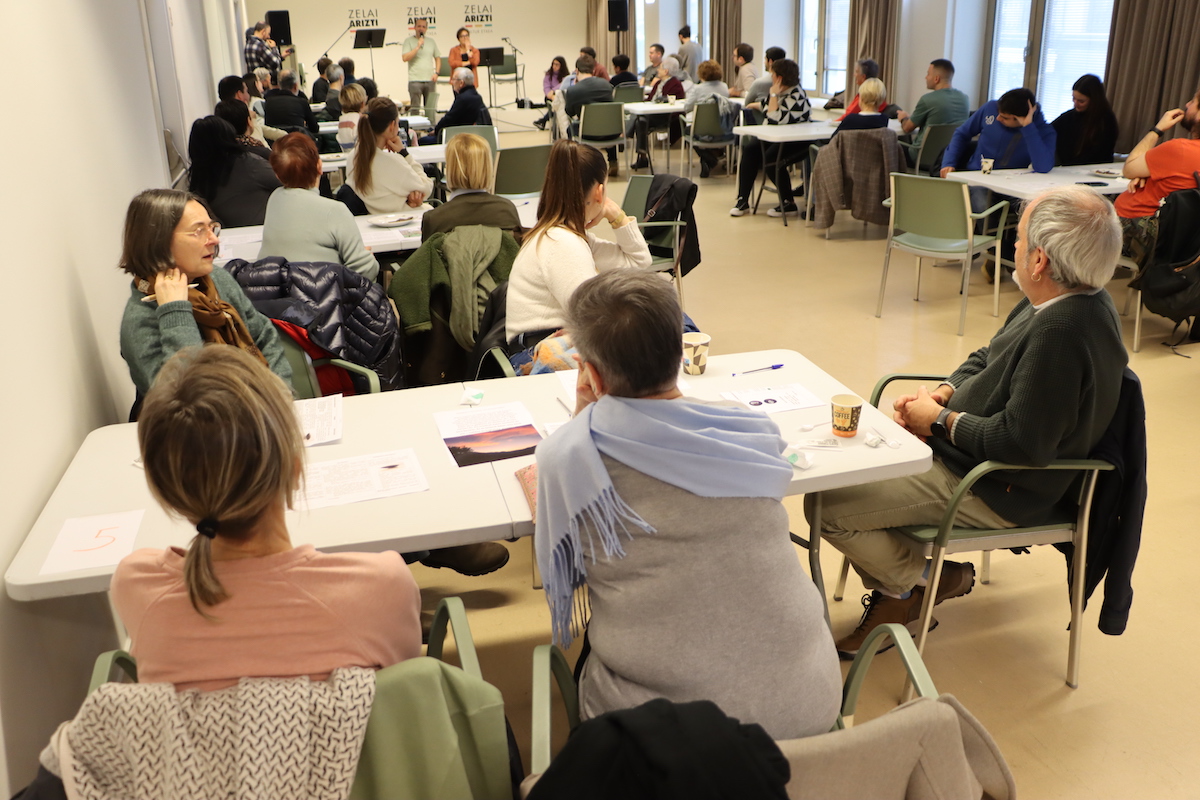Zumarragako Zelai Arizti kultur etxeko areto nagusian elkartu da berrogei laguneko taldea.