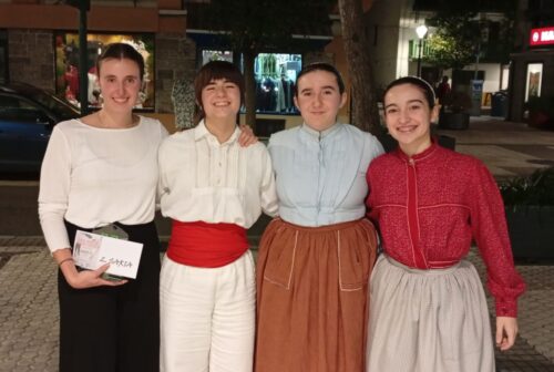 Irati Olaizola, ezkerrean sariarekin, Amaia eta Irune Azpeitia eta Eider Carballo.