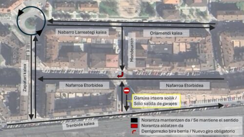 aurrera jarraitu beharko da; ezin izango da zuzenean Trenbide kalera iritsi. Mendeurren etorbideko 2Ako garajeetako erabiltzaileek, ordea, Trenbide kaletik sartu eta irten beharko dute.