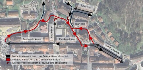 Andre Mari kaletik gora doazen ibilgailuek nahitaez eskuinera biratu beharko dute Martina Maiz kalera, hortik beherantz Esteban Lasa kalera iristeko.