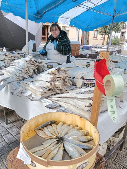 Sardina zaharrak baino gehiago, bakailao gazia saltzen da postu honetan, eta era askotan prestatuta dute aukeran: tamaina eta lodiera desberdinetako xerrak, takoak, puntak, hegalak, kokotxak, buruak eta papurtutakoa.