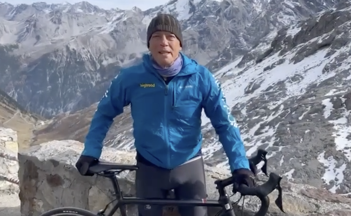 Fermin Aramendi Stelvio gainean bertsotan, sareetan zabaldu den bideotik ateratako irudian. Hitza Fermin Aramendik (Ataun, 1960) agur esan dio telebista lan jardunari. Artean maillota izerditan zuela, Italiako Stelvio mendatetzarraren gainetik hiru bertso kantatuz jakinarazi du telebistan txirrindularitza esatari izateari utziko diola.