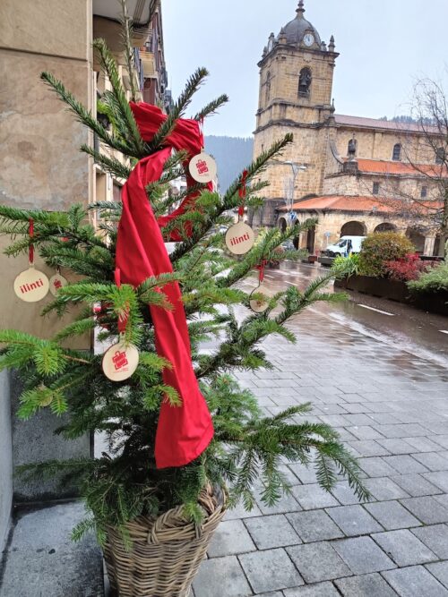 Ilinti merkatari elkarteak ere ipini du bere alea, eta bolekin apaindutako izeiak daude jarrita dendetako sarreretan. Denda gehienek, izan Ilintikoak edo ez, apainduta dituzte dagoeneko erakusleihoak, tamaina handiko beste Olentzero panpina bat jarri duen Apatxo liburu dendak bezala. Merkatari batzuek, gainera, parte hartuko dute udalak antolatutako Gabonetako lehiaketan.