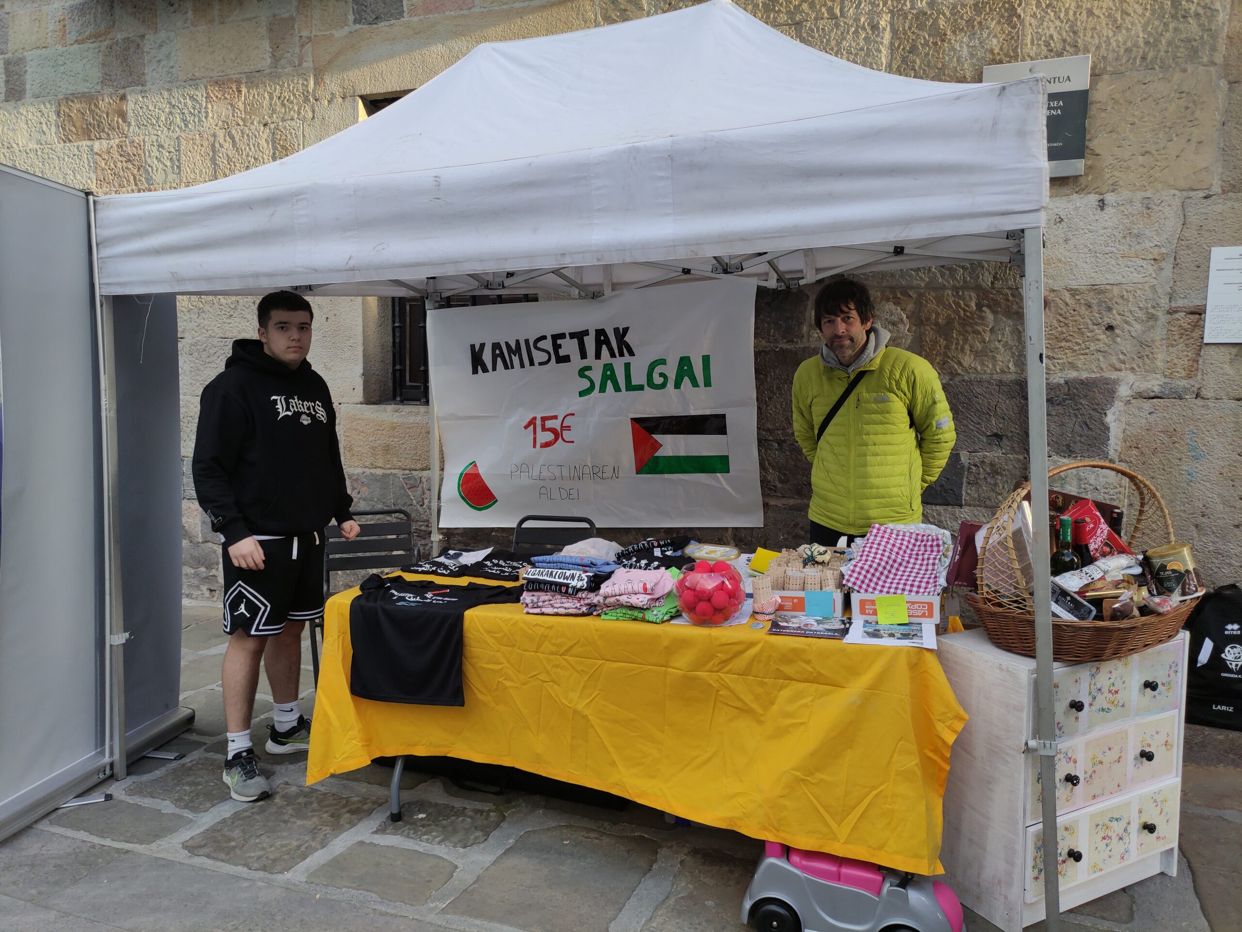 Horrez gain, Jakintza Ikastolako DBHO1eko ikasleak ikasturte honetan Palestinako egoeraren inguruko lanketa egiten aritu dira. “Egoera lazgarri hori nolabait samurtzen laguntzeko ikasleek 15 euroko prezioan kamiseta batzuk diseinatu eta saltzea erabaki dute, lorturiko dirua Palestinara bideratzeko UNRWA erakundeari esker. Hortaz, kamiseta horiek ere merkatu txikian bertan eskuragarri izango dira”.