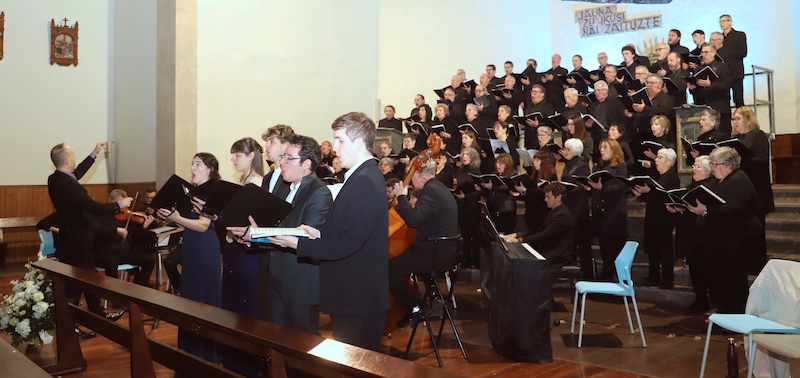 Zuhara Etxabe, sopranoa; Itoiz Uribe, mezzosopranoa; Ibai Murillo, kontratenorea; Erik Carrero tenorea eta Txomin Maidagan, baritonoa aritu zen bakarlari. Tomas Rutik, kontzertinoan eta Borja Rubiñose, pianoan osatu zuten musikarien zerrenda. Eliza goraino bete zen ikuslez.