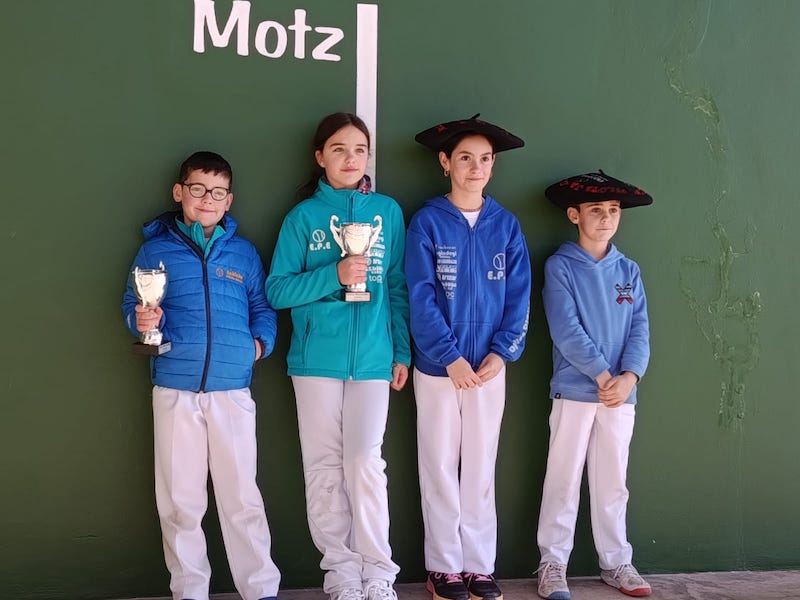 Finalak jokatuta, Sara Azpeitiak eta Ekain Iturriotzek osatutako bikoteak irabazi du benjaminen eta kimuen mailako txapelketa. Pilota goxuan, Aner Unzurrunzaga eta Mattin Ugarteburu gailendu dira; haurren kategorian bikoteka Amaiur Landa eta Amets Gabilondo izan dira irabazleak eta kaiolakoan Amaiur Landa.