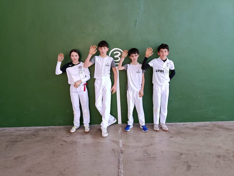 Ezkioko pilota eskolaren eskariz, beste herri batzuetako eskoletako hiru haurrek ere parte hartu dute Ezkioko txapelketan, «bikoteak orekatzeko»: Urretxuko pilota eskolatik Eki Arteta, Zumarragako Belokitik Pablo Mendizabal eta Beasaingo Murumenditik Amaiur Landa.