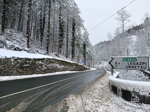 Legazpiko erdigunea zurituta dago oraindik. Udaleko brigadako langileak goizeko lehen orduetatik elurra eta izotza kentzen etenik gabe lanean ari badira ere, oraindik espaloi eta kale asko zuri daude. GI-2360 errepidea, aldiz, garbi dago, elur makinen lanari esker.