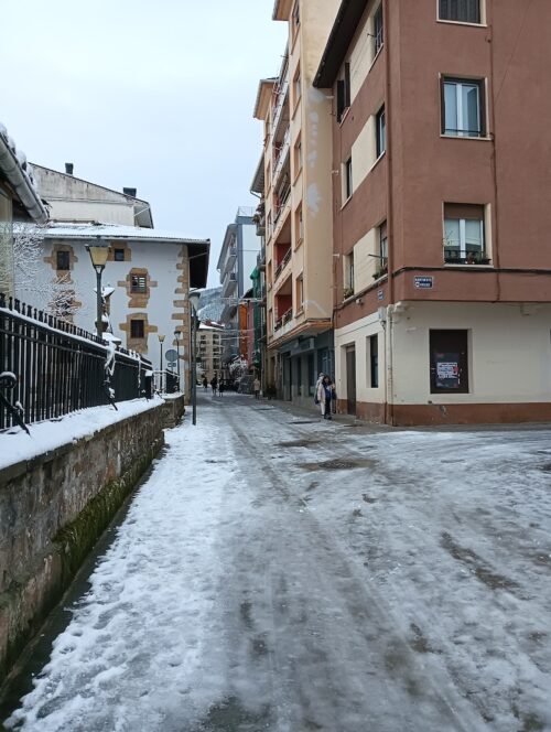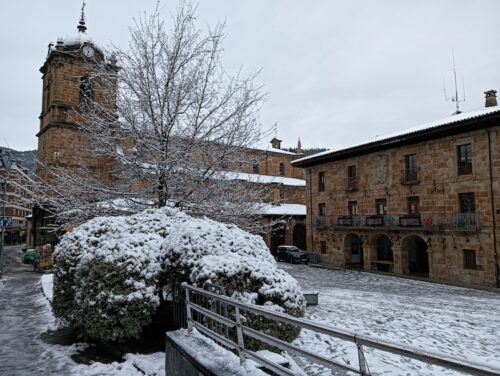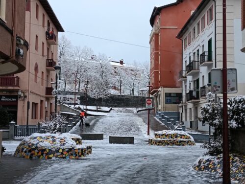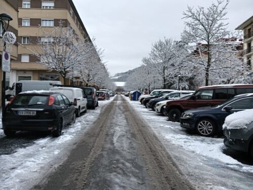 Atzo goizean, jai eguna izan arren, udal brigadakoek lanean jardun zuten gauean egindako elurra makinekin garbitzeko eta bide eta espaloietan gatza botatzeko. Baserrietako bideak ere garbitu zituzten traktoreei erantsitako palekin, gune bakoitzean izendatutako herritarrek. Arratsaldean berriz egin zuen elurra eta tenperatura asko jaitsi zenez, izotza egin zuen. Egoera horren aurrean, udal brigadako kamioiak eta suhiltzaileek garbiketa eta gatza botatzeko lanak egin zituzten. Udaleko lantaldeak gaur goizeko lehen orduan jarraitu du lanekin, “udalerriko errepideak, espaloiak eta puntu kritikoak berriro garbitzen saiatuz”.