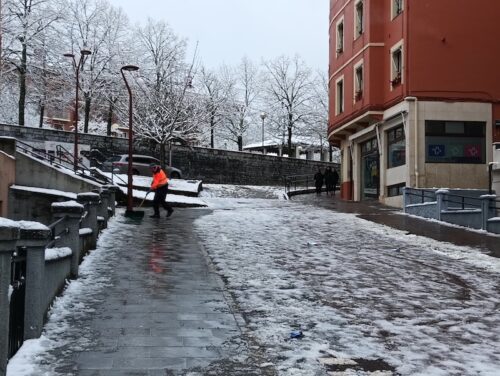 Udaleko brigadako langileak goizeko lehen orduetatik ari dira espaloietatik eta "puntu kritikoetatik" elurra eta izotza kentzen. Herritarrek gatza dute eskura herriko hainbat gunetan.