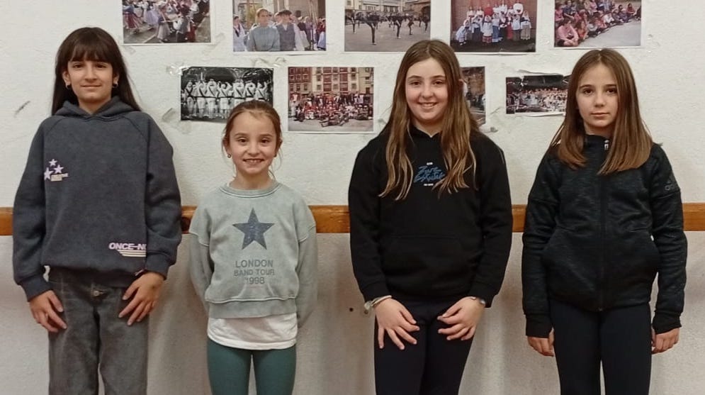 Txapelketan parte hartuko duten dantzarietako batzuk, biharko saiokoak: ezkerretik eskuinera, Mikele Balentziaga, Sara Escudero, Nora Lafuente eta Araitz Mantxola.