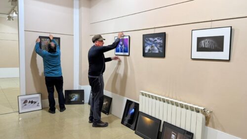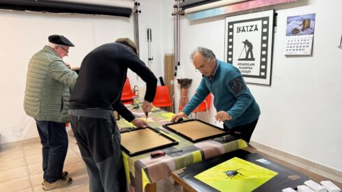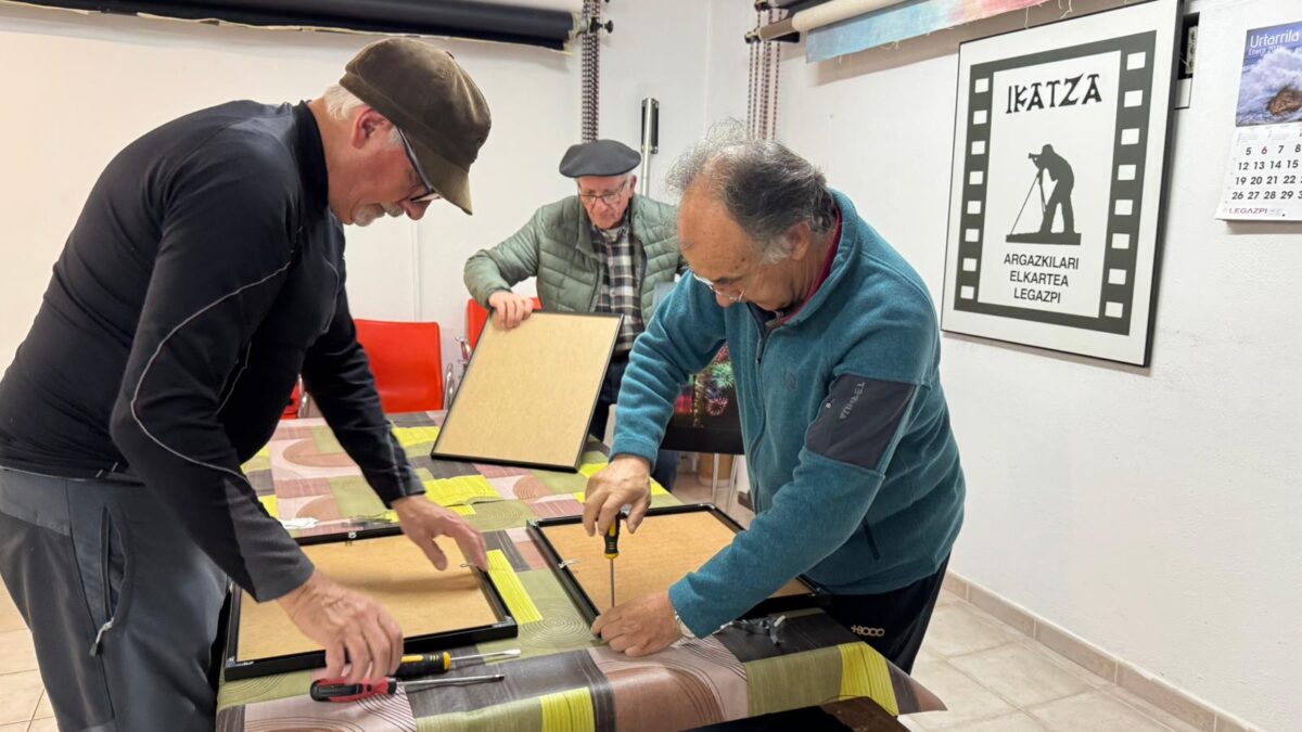 Ikatzako kideak atzo, erakusketa muntatzen.Ikatza argazkilari elkartea Atzerapen pixka batekin, baina ireki dute Argizaiola erakusketa Kultur Etxean Ikatza argazkilari elkarteko kideek. Erakusketa hilaren 23ra arte egongo da ikusgai.