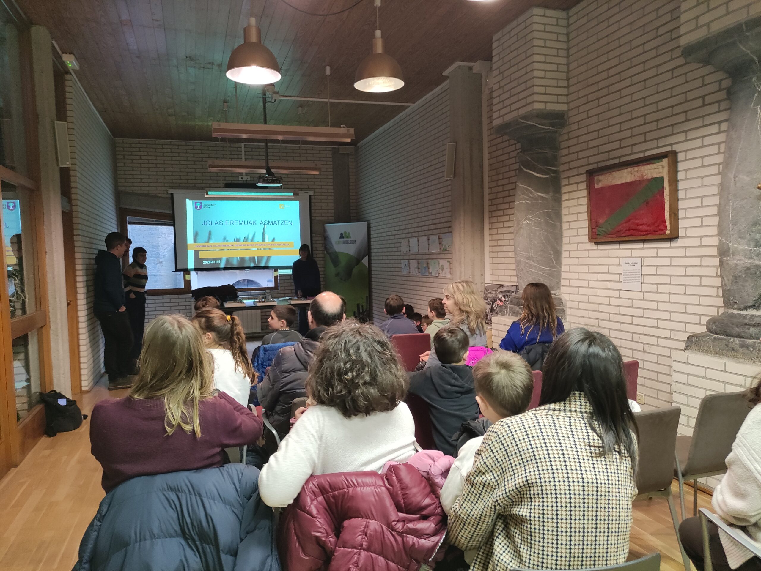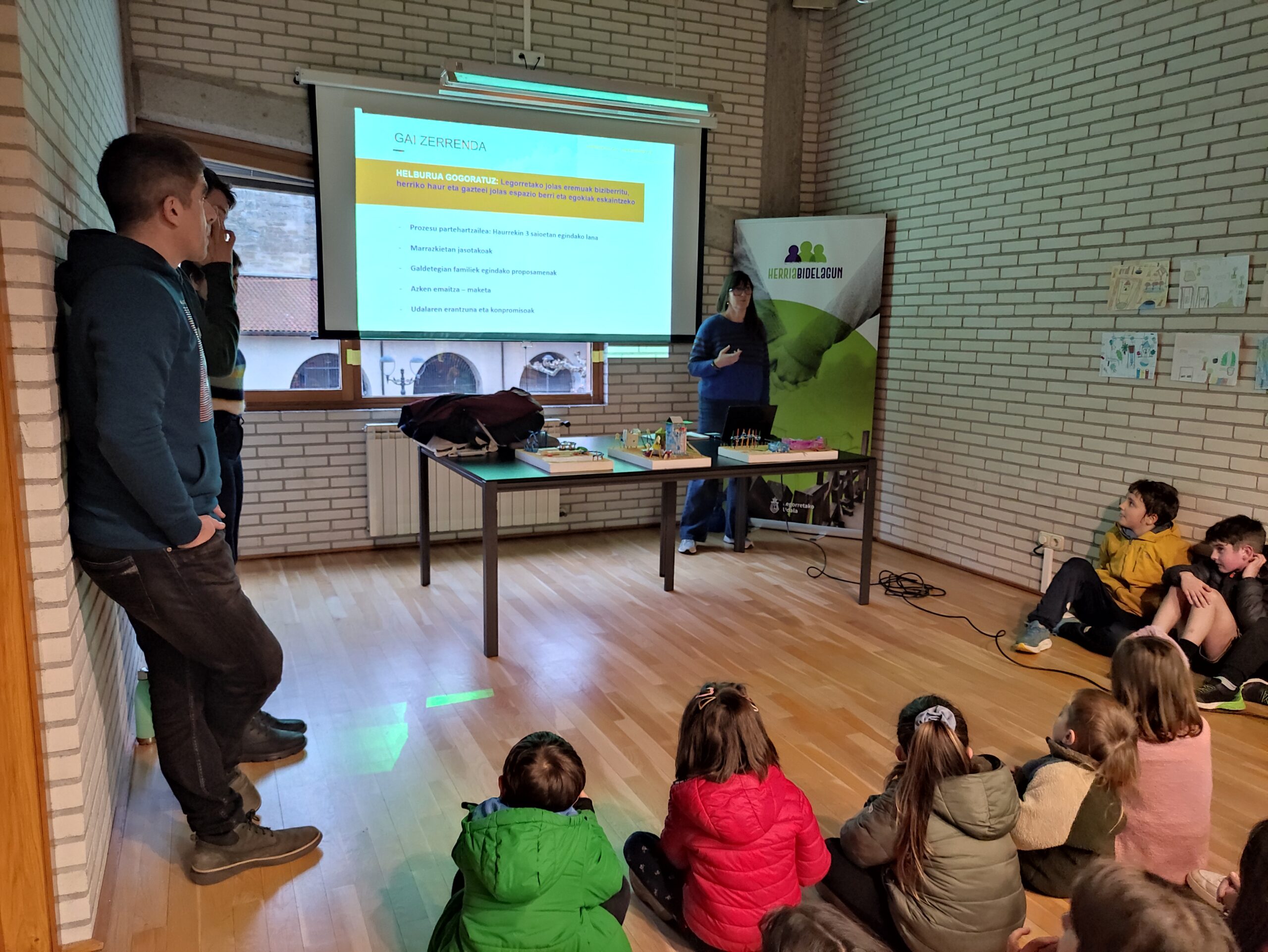 Haurrek eta gurasoek Legorretako udal areto nagusia bete zuten atzo arratsaldean.Loinaz Agirre. Azken hilabeteotan, Ugaro ikastetxeko 6 eta 12 urte bitarteko haur eta gaztetxoak, herriko jolas eremuak biziberritzeko prozesuan murgilduta egon dira. Laia kooperatibak gidatuta, hiru saiotan, 12 haurrez osatutako taldeak, herriko hiru jolas guneak aztertu, eta beraien nahiak islatu dituzte hiru maketetan. Prozesuan zehar, ikuspegi zabalagoa izateko, gurasoen eta familien ekarpenak ere jaso dira, etxean erantzundako galdetegien bidez. Bestalde, prozesuan zuzenean parte hartu ez duten haur eta gaztetxoak ere, marrazkien bitartez jolas eremu berrirako proposamenak egin ahal izan dituzte.