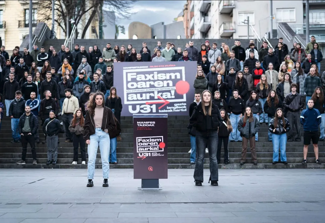 Gazte Koordinadora Sozialistak urtarrilaren 31ko manifestaziorako deia egin zuen Bilbon egindako agerraldian.Hitza Goierriko Gazte Koordinadora Sozialistak (GKS) manifestazioak ditu deitua urtarrilaren 31rako Bilbon eta Iruñean Faxismoaren eta estatuen autoritarismoaren aurka goiburupean, eta hura girotzeko hainbat kultur ekintza antolatu ditu ostiralerako, hilak 23. Goierriko bost herritan egingo dituzte: Beasainen, Legazpin, Ordizian, Urretxu-Zumarragan eta Zaldibian.