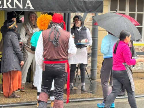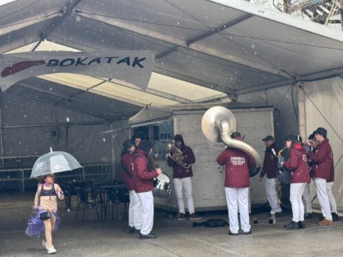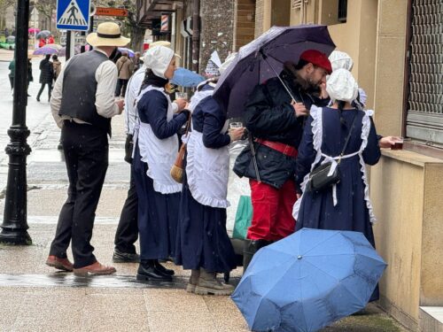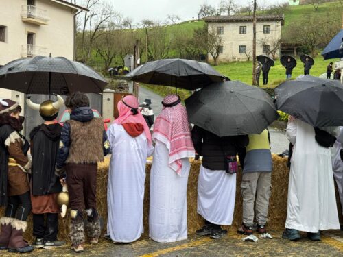 Mozorro egun euritsua ospatzen ari dira idiazabaldarra, San Blas aietako asteburu luzearen muinean.