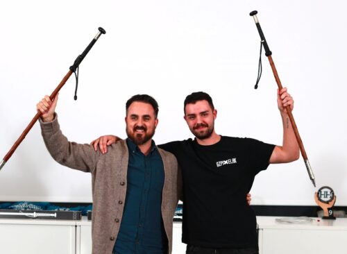 Ruben Caceres eta Gorka Gomez, makila banarekin.