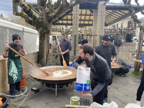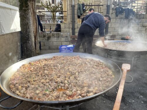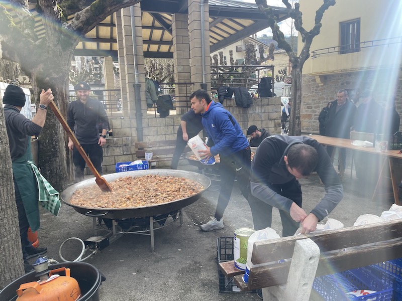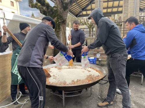 San Blas eguna elkartzeko aitzakia ere bada idiazabaldarrentzat eta horren erakusle da, urtetik urtera horren arrakastatsua izan ohi den paella jana. Goizeko 9:00etan hasita jardun dute paella erraldoiak prestatzen, ondoren, izena eman duten 800 pertsonei jaten emateko. Egun horretako beste klasiko bat den kuadrillen arteko jolasek eta Joselu Anayak taldearen kontzertuak borobilduko dute gaurko egitaraua.