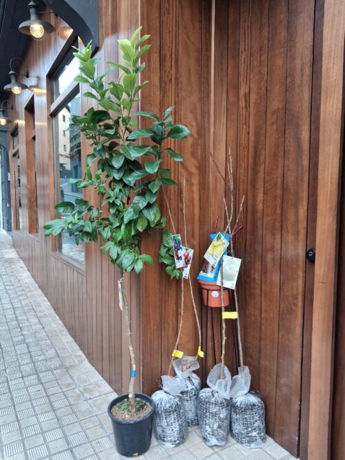 Oraindik ez dute eskaintza osoa osatuta, baina zer erosi badute. Hala, aranondo, sagarrondo, intxaurrondo eta melokotoiondo landareak dituzte, bi urtekoak, 13,5 euroan bakoitza. Mandarinondoak, laranjondoak eta limoiondoak ere badituzte, 3-4 urteko landareak, 21,5 euroan. Zitrikoen atala osatzeko, terrazetan edo lorategietan jartzeko limoiondo txikiak era badituzte, fruta eta guzti, 55 euroan. Fruta arbola exotikoagoak nahiago dituztenek, berriz, kiwia (20 euroan) eta ahuakatea ere badituzte (37 euroan). Eta bertakoak ere bai, errezil sagarra ematen dutenak, 106 patroikoak, 12 euroan.