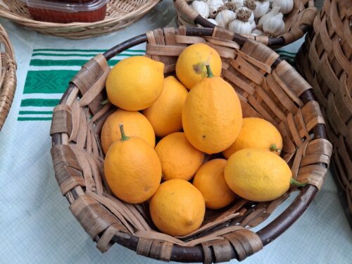 Bi aramar hauen postuaren aurre-aurrean berea dute beste bi aramarrek, Maite eta Arantxa Zurutuzak, eta bertan jarri dute salgai eguneko beste produktu nagusia, limoia. Altzagakoak ere bazeuden salgai duela aste batzuk hasita, baina tamaina txikiagokoak ziren. Limoiaren kiloak 3 eta 4 euro artean egin du gaur..