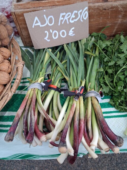 Antzekoa gertatzen da baratxuri freskoarekin. Ia urte osoan izaten da, boladaka, eta aste honetan Aramatik ekarri dute Miren Jauregi eta Jaione Irazusta ama-alabek, sorta 2 euroan jarrita.