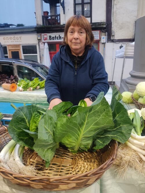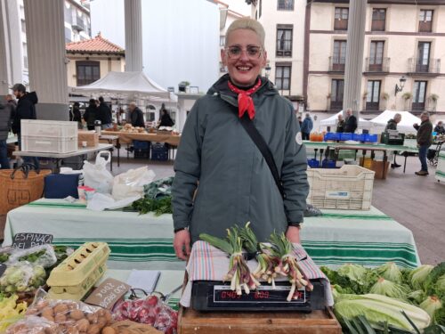 Ana Etxeberriak hartu du Arizmendi gazta salmenta postuaren ardura, Ixiar ahizpari erreleboa hartuta, eta ardi gazta berriarekin hasi du jarduera. Udaberriko aza eta baratxuri freskoa ere berriak ziren gaur.