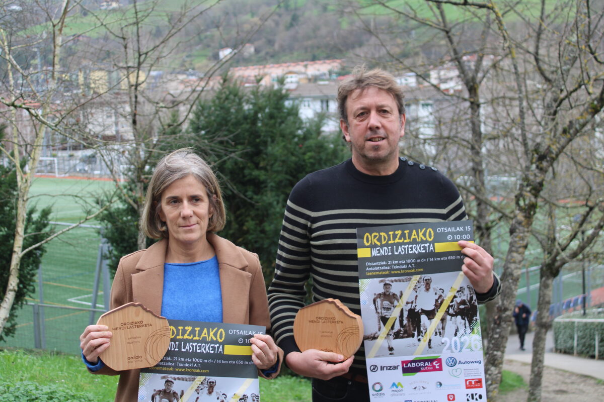Izaro Rubio antolatzailea eta Jon Ander Caballero udaleko zinegotzia, gaur goizeko aurkezpenean. Izaro Villarreal Igandean jokatuko da Txindoki Atletismo Taldeak antolatu ohi duen Ordiziako Mendi Lasterketa, Goierri Kopa Traileko bigarren proba puntuagarria. Gaur egin dute lehiaketaren aurkezpena, Majori kiroldegian, eta probaren nondik norakoak argitu dituzte. Garinen hasi zen kopa iragan urtarrilean, eta Legazpin amaituko da, urriaren 18an. Hurrengo proba, Urretxu-Zumarragan jokatuko da, martxoaren 1ean.
