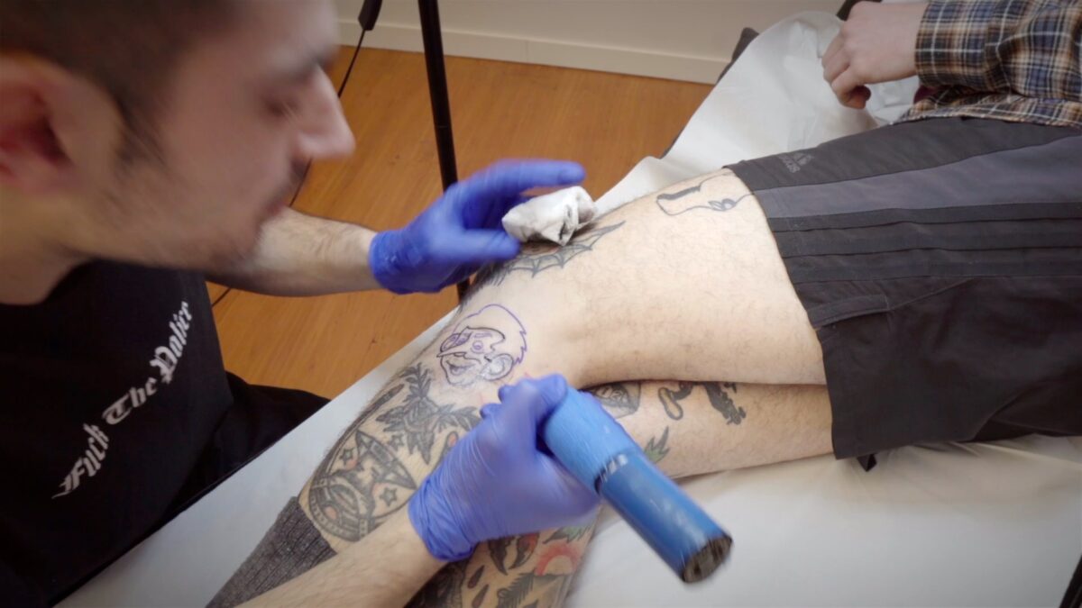 Urteak daramatza Lazkagao Tattoo artistak tatuajeak egiten.