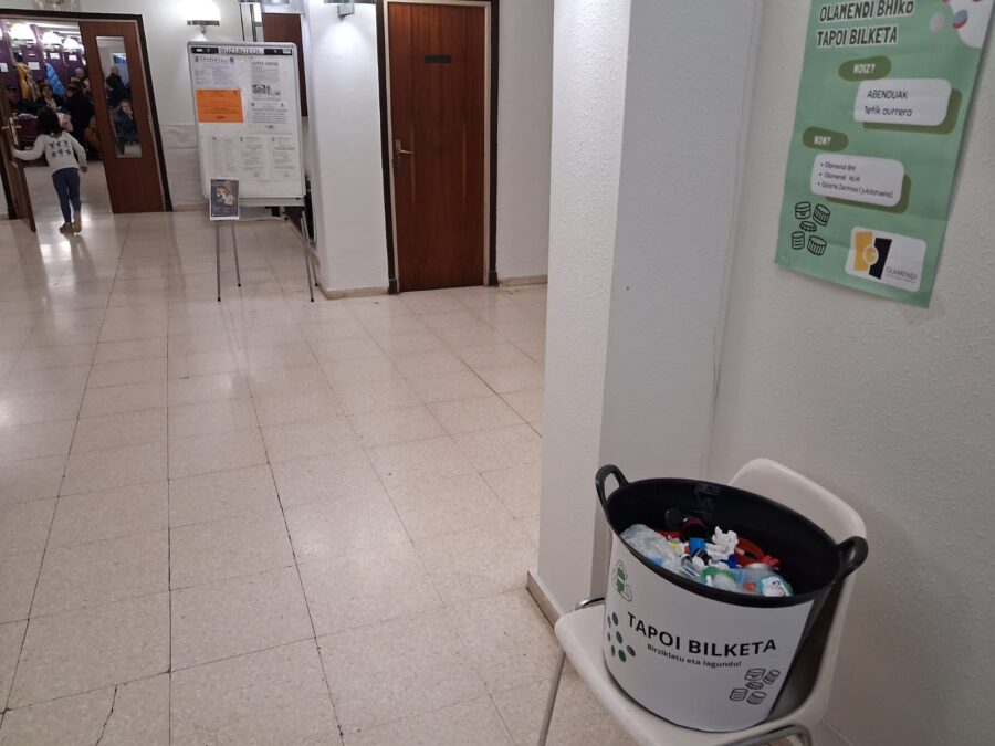 Tabakalerarekin elkarlanean, institutuko sarrerarako altzairuak egingo dituzte plastikoarekin. Olamendiko bi eraikin nagusietara eta Gizarte Zentrora eraman daitezke tapoiak.