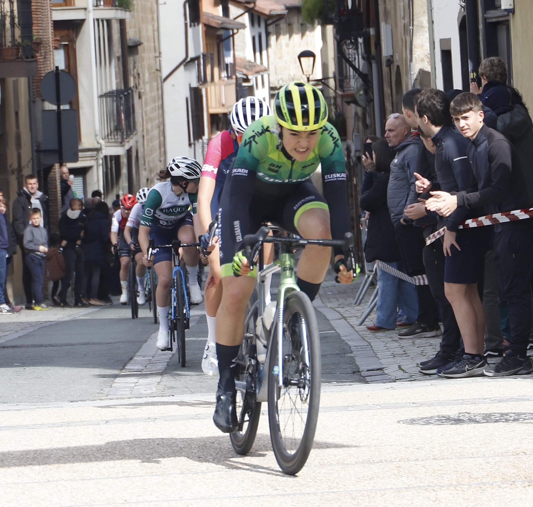 Maite Urteaga Euskadiko txapelduna Segurako plazako helmuga gurutzatzen, atzo.Angel Elorza Emakume Langilearen Nazioarteko Egunean jokatu zen atzo Seguran Euskadiko Emakumezkoen txirrindularitza Txapelketa 5. Emakumeen Segurako Sariaren baitan. Kirol proba aldarrikapena ere bihurtu zen, Martxoaren 8arebn testuinguruan.