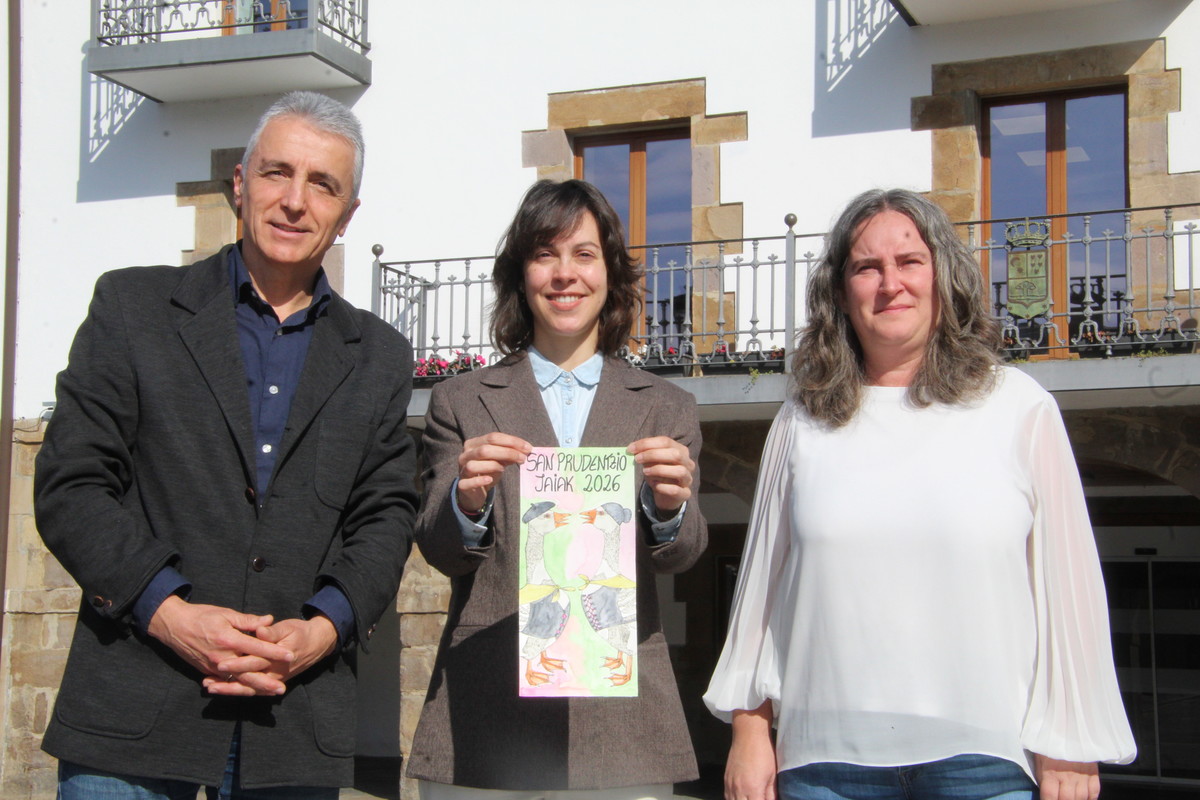 Kepa Zubiarrain alkatea, Lexuri Vazquez eta Amagoia Naldaiz zinegotzia.Lazkaoko Udala. Lexuri Vazquezek irabazi du Lazkaoko San Prudentzio jaietako kartel lehiaketa. “Kartelaren diseinuak, Lazkaoko tradizioa eta kulturaren eragina islatuz, antzar bi jartzen ditu protagonista nagusi gisa”.