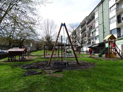 Bitartean, herritarren eta haurren segurtasuna bermatzeko asmoz, eremua hesitu du udalak, eta beraz, lanek irauten duten bitartean ezingo dira bertako jolasak erabili.