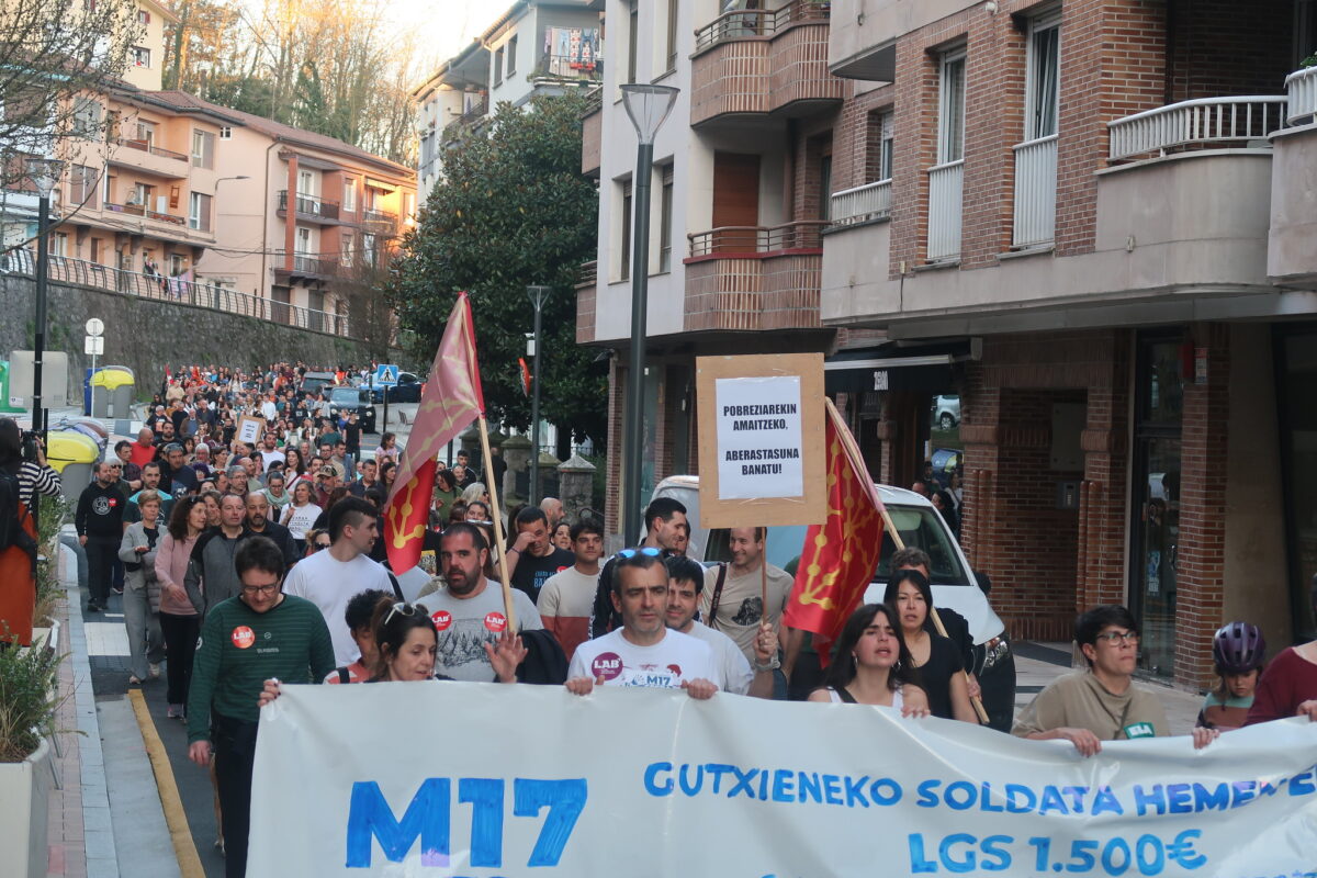 Ordiziatik eta Lazkaotik abiatutako zutabe bana abiatu, eta Beasainen elkartu dira denak gaur arratsaldean pentsio propioaren alde eta gutxieneko soldataren alde. Behin bat egindakoan, manifestazio jendetsua egin dute Beasaingo herriguneko kaleetan. Loinazko San Martin plazan bukatu da, eta han gazte batek, emakumezko migratu batek –gazteleraz– eta pentsionista batek hartu dute hitza. Internazionala eta Eusko Gudariak abestuz bukatu dute mobilizazioa.