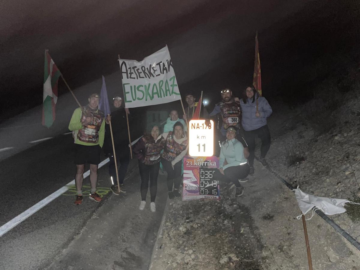 Duela bi urte, Iso inguruan, Nafarroa ipar-ekialdean, Irunberri eta Nabaskoitze artean, goizeko ordu txikietan, bakar-bakarrik, egon ziren Korrikaren zain. «Goierritik pasatzen denean jende mordoxka bat egoten da. Baina errepide bakartietan are eta bereziagoa izaten da Korrika. Pentsatzen duzu, guregatik doala Korrika aurrera eta kuriosoa izaten da. Polita da».