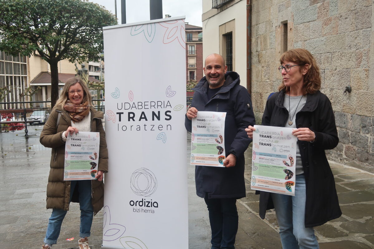 Ainhoa Jimenez, Adur Ezenarro eta Kristina Altuna, gaur goizeko aurkezpenean. Izaro Villarreal Seigarrenez jarraian Udaberria Transloratzen, Ordizia Transformatzen zikloari ekingo diote aste honetan Ordizian, LGTBI+ kolektiboaren errealitatea ezagutarazi eta LGTBIfobiaren aurkako kontzientzia zabaltzeko helburuarekin.