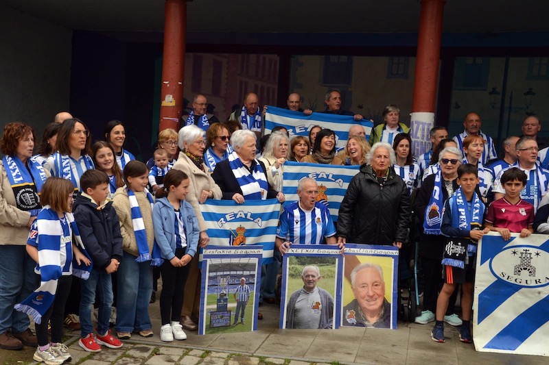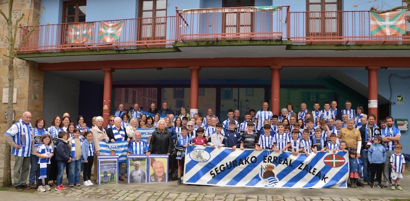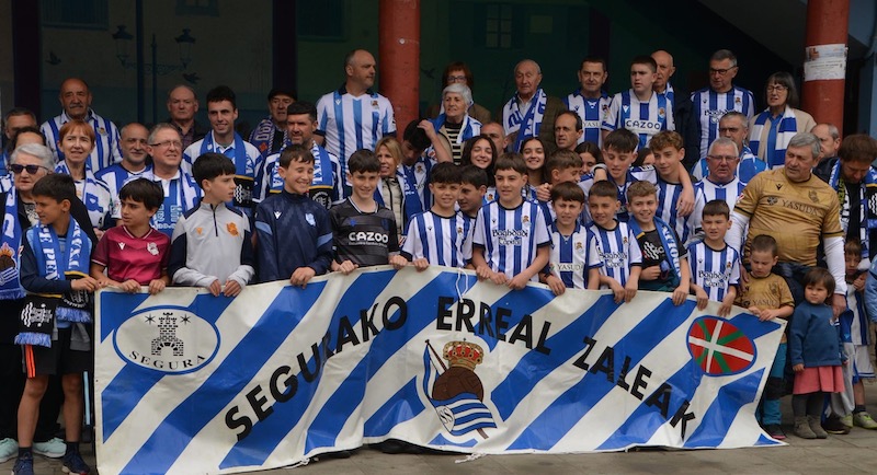 Segurako Realzaleen taldeko argazkia Txanbolinpen, Kopako finalaren zain. Pello Agirrezabal Realak apirilaren 18an Atletico Madrilen aurkako jokatuko duen Kopako finalari begira daude Seguran ere. Segurako Errealaren Lagunak taldeak deituta, talde argazki erraldoia atera dute Txanbolinpen, euren talde kuttunak herritarren babesa sentitzeko helburuarekin.