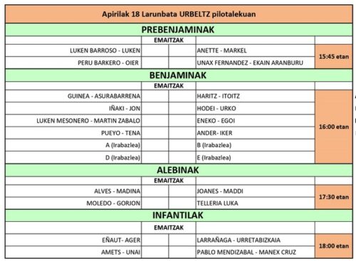 Legazpiko haurren pilota txapelketako finalerdiak, larunbatean Urbeltzen