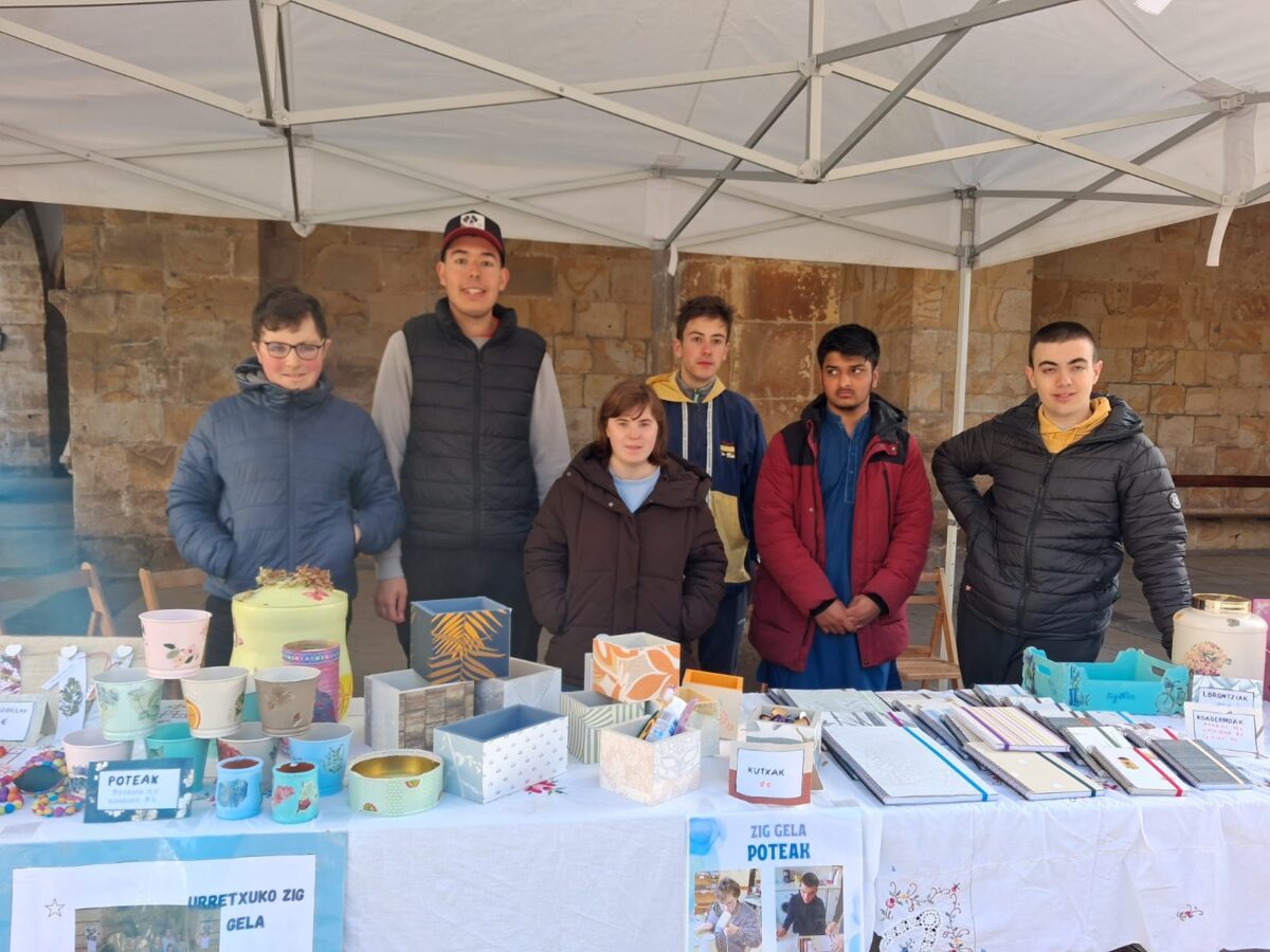 Legazpiko azokan postu berezia dago gaur, Urretxuko institutuko ZIG gelako ikasleena. Eskolan egindako produktuak saltzen ari dira, maiatza amaieran Saloura ikas-bidaian joateko dirua lortzeko.