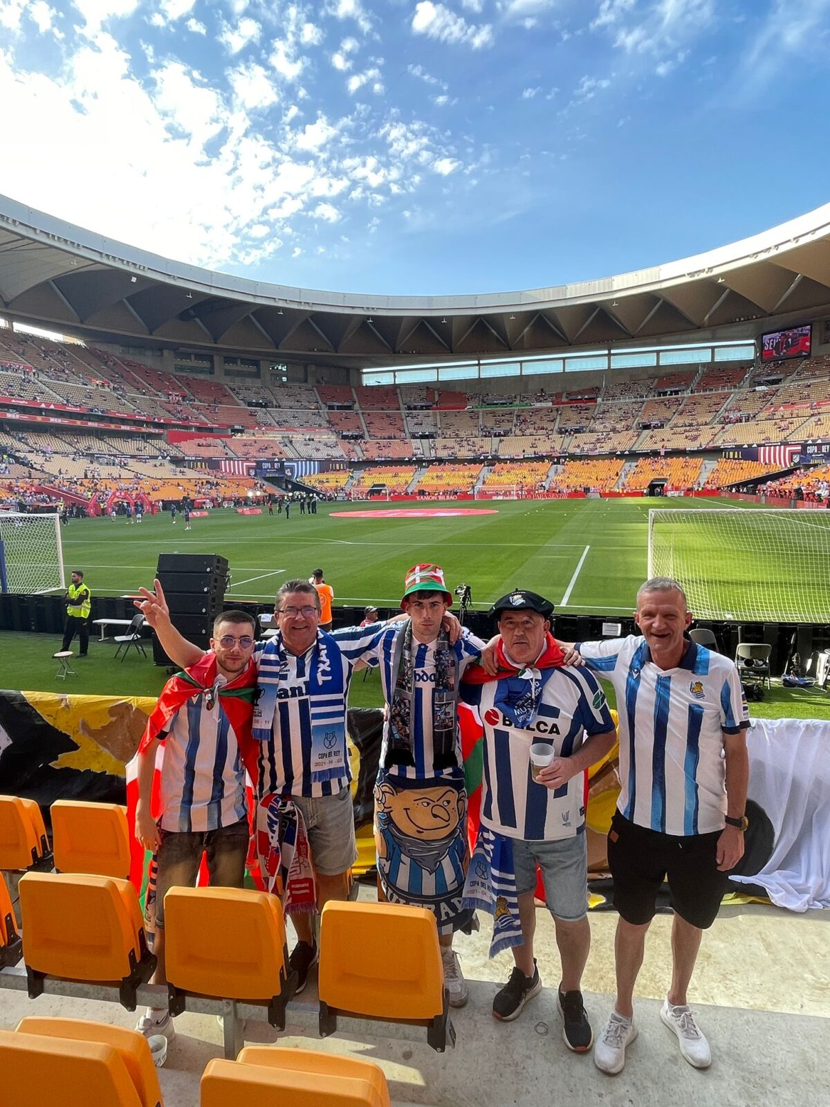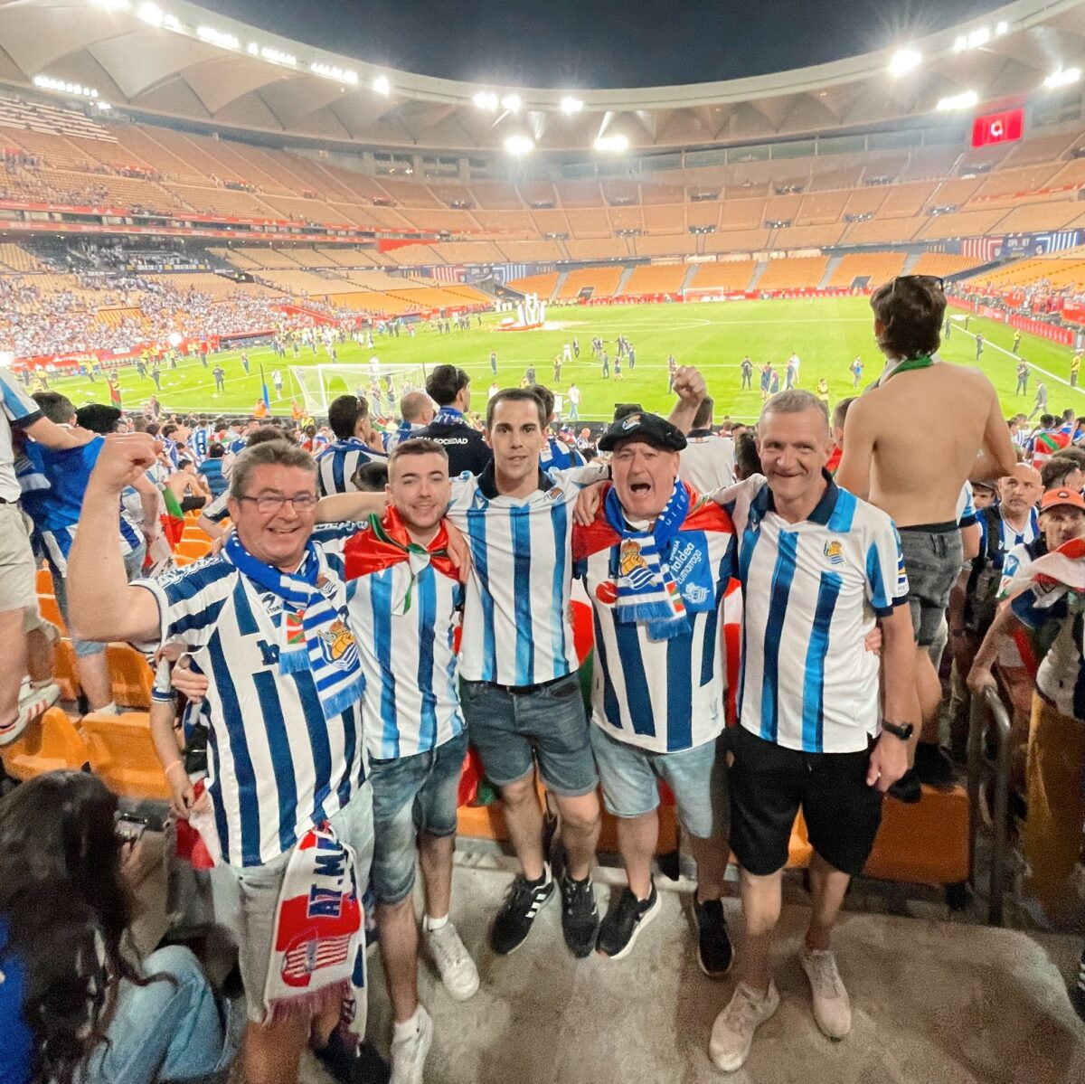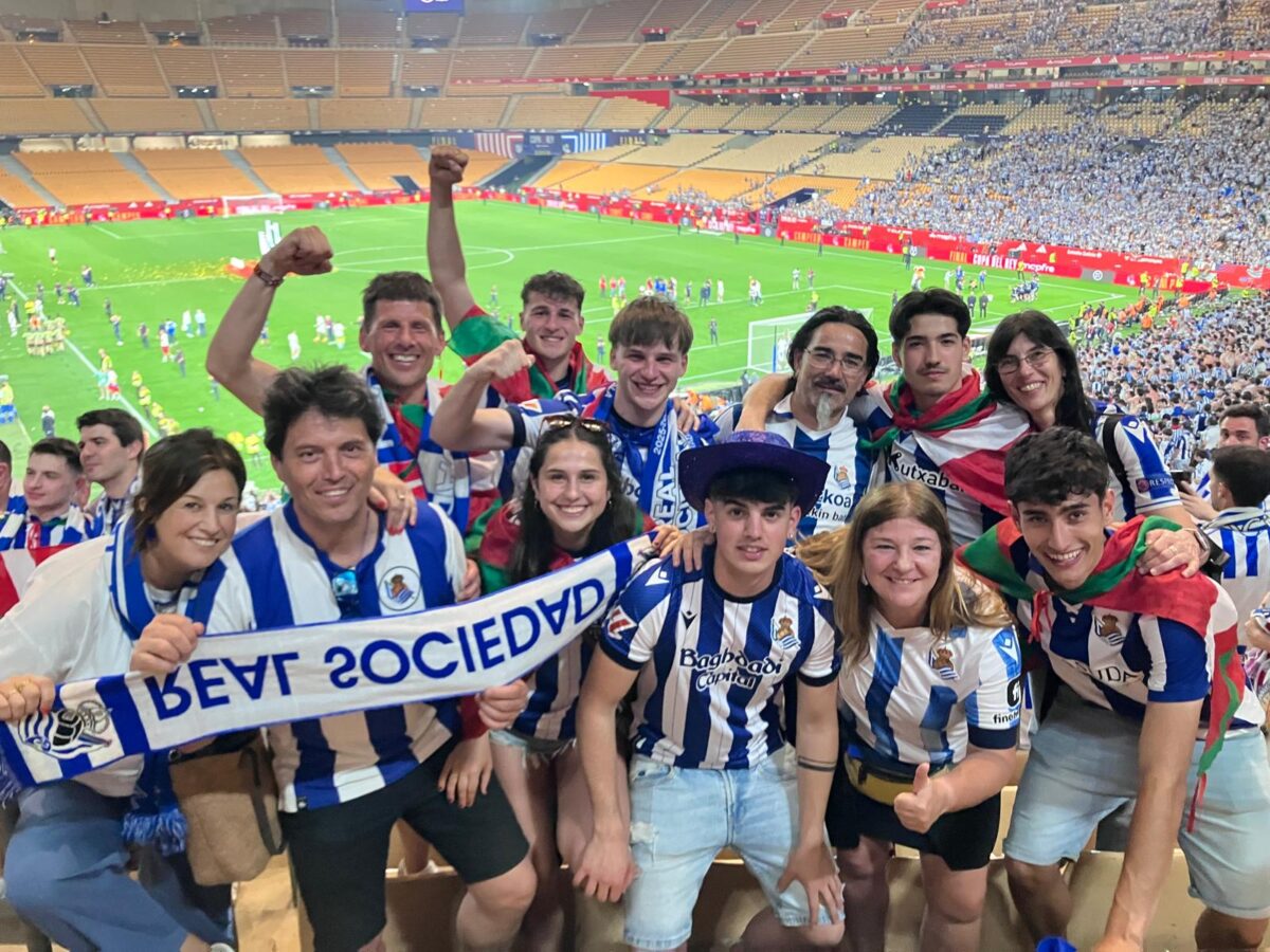 Larunbatean Realak Kopako finala irabazi zuen Sevillan. 38 urte pasa dira zaleek azkenekoz final batetaz behar bezala gozatu ahal izan zutenetik, Atletico Madrilen aurka, penaltietan garaile… Historikoa izan zen. Jokalariek eta zaleek zuten dena eman zuten. Egun, ez dago Urretxu eta Zumarragako futbolaririk Realean, baina zaleak… Mundu osoan bizi diren urretxuar eta zumarragarren bultzada jaso zuten Realeko jokalariek. Urretxun eta Zumarragan udalek pantaila erraldoiak jarri zituzten eta Gernikako Arbola eta Euskadi plazak jendez bete ziren. Adin eta jatorri guztietako jendea elkarrekin. Oihuak, besarkadak… Zoramena. 40 urtetik beherakoek, lehenengoz final bat bizitzeko aukera izan zuten. Haurrak txundituta zeuden. Beraien bizitzako egun politena, askoren esanetan. Sevillan, berdin. Kalkuluen arabera, 800 bat urretxuar eta zumarragar joan ziren Sevillara. Lau pauso eman eta beste herritar bat. “Zuek ere hemen? Aupa Real!”. Realeko jokalariek herritik urrun bizi diren urretxuar eta zumarragarren bultzada ere jaso zuten. Ez zuten herrira etortzerik izan, ez zuten Sevillara joaterik izan… baina partida telebistan ikusi zuten (horietako batzuk, jakizue ze ordutan jaikita). Javier de Luz eta Jon Ander Camposek, adibidez, San Franciscoko Euskal Etxean ikusi zuten partida, Peio Calvo ordiziarrarekin. Ondoren, sagardotegi afaria egin zuten Euskal Etxeko frontoian.
