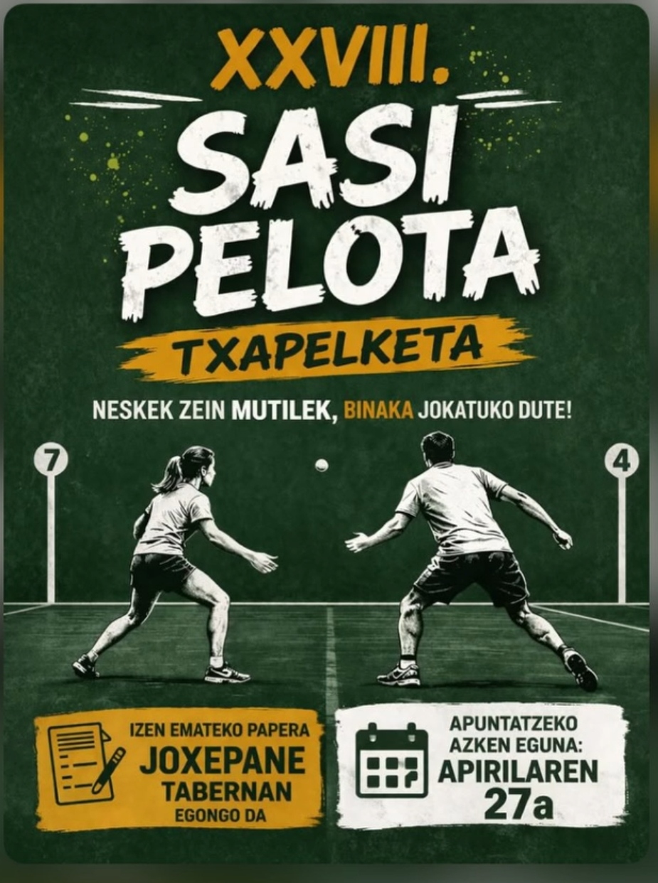 Zaldibiako 28. Sasi-pilota txapelketan izena emateko azken egunak